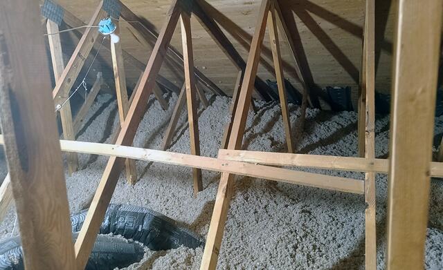 Even these attic trusses couldn't hinder us from ensuring proper insulation.